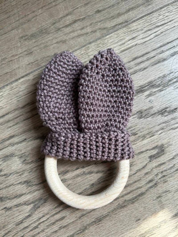 Op zoek naar een schattig en praktisch cadeau voor een newborn? Deze handgemaakte bijtring met gehaakte konijnenoren is een perfecte keuze!